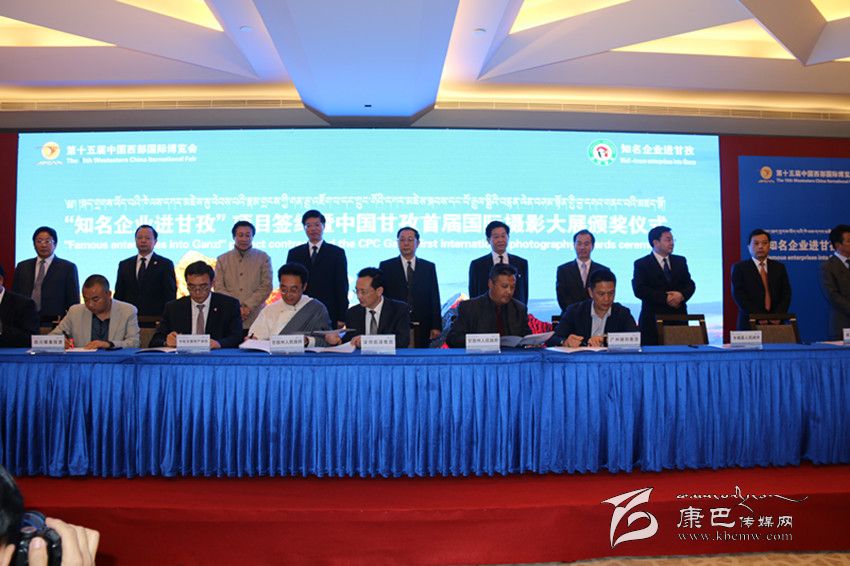 本網(wǎng)訊 (記者 秦松 陳雪峰 文/圖) 10月25日,“知名企業(yè)進(jìn)甘孜”項(xiàng)目簽約暨中國(guó)甘孜首屆國(guó)際攝影大展頒獎(jiǎng)儀式在成都舉行。項(xiàng)目簽約儀式上,我州按照“一優(yōu)先、二有序、三加快”的產(chǎn)業(yè)發(fā)展思路,精心篩選包裝推出了具有一定代表性和廣闊市場(chǎng)前景的148個(gè)估算總投資560億元的招商項(xiàng)目,主要涉及旅游業(yè)、文化業(yè)、特色農(nóng)牧業(yè)、中藏醫(yī)藥業(yè)、工業(yè)、服務(wù)業(yè)等產(chǎn)業(yè)。邀請(qǐng)國(guó)內(nèi)外知名企業(yè)100余家;簽約項(xiàng)目23個(gè),投資額87.28億元。其中:旅游類9個(gè),投資額41.68億元;能源類5個(gè),投資額32.8億元;農(nóng)牧業(yè)類3個(gè),投資額10.6億元;基礎(chǔ)設(shè)施類4個(gè),投資額2.2億元;協(xié)議簽約2個(gè)。