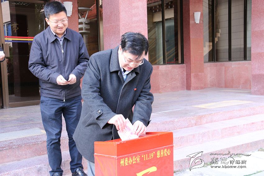 募捐儀式上,胡昌升對州委辦公室干部職工積極踴躍參與愛心慈善活動給予了充分肯定,并希望全州廣大干部職工和社會各界愛心人士要大力弘揚(yáng)“甘以愛人、孜求慈善”的甘孜愛心慈善精神,積極參加到“11·19愛心慈善一日捐”活動中來,為全州困難群眾伸出援手、獻(xiàn)上愛心、作出貢獻(xiàn)。