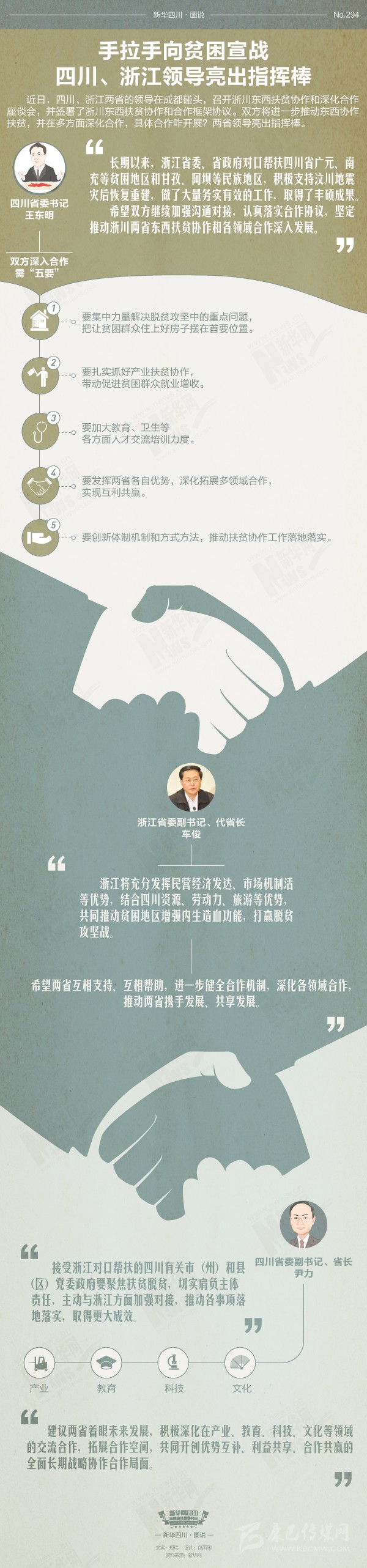 近日,四川、浙江兩省的領導在成都碰頭,召開浙川東西扶貧協(xié)作和深化合作座談會,并簽署了浙川東西扶貧協(xié)作和合作框架協(xié)議。雙方將進一步推動東西協(xié)作扶貧,并在多方面深化合作,具體合作咋開展?兩省的領導亮出指揮棒。