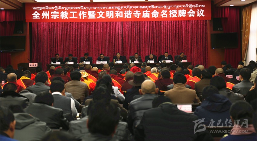 本網(wǎng)訊(記者 楊杰 文/圖)3月28日,全州宗教工作暨文明和諧寺廟命名授牌會(huì)議在康定召開(kāi)。會(huì)議深入學(xué)習(xí)貫徹全國(guó)、全省宗教工作會(huì)議精神,深化對(duì)做好新形勢(shì)下宗教工作重大意義的認(rèn)識(shí),總結(jié)經(jīng)驗(yàn)、查找不足、部署工作,提升全州宗教事務(wù)依法管理水平,引導(dǎo)宗教與社會(huì)主義社會(huì)相適應(yīng)。會(huì)議對(duì)2016年達(dá)標(biāo)升級(jí)的文明和諧寺廟進(jìn)行了命名授牌。州委書(shū)記劉成鳴出席會(huì)議并講話(huà),州政協(xié)主席向秋出席會(huì)議。