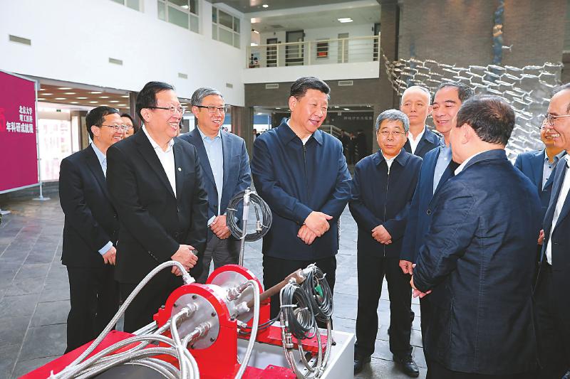 近年來(lái),北京大學(xué)培養(yǎng)和匯聚了一批具有世界領(lǐng)先水平的科學(xué)家、科技領(lǐng)軍人才和創(chuàng)新團(tuán)隊(duì),科研綜合實(shí)力、原始創(chuàng)新能力顯著增強(qiáng)。在金光生命科學(xué)大樓一層大廳,展示了近年來(lái)北京大學(xué)在理科、工科、醫(yī)科等領(lǐng)域的科研成果。習(xí)近平認(rèn)真聽(tīng)取關(guān)于學(xué)校學(xué)科建設(shè)、人才隊(duì)伍建設(shè)、科研創(chuàng)新能力提升等情況介紹,并仔細(xì)察看新一代干細(xì)胞技術(shù)、碳芯片技術(shù)、微型雙光子顯微成像系統(tǒng)等科研裝置和實(shí)物模型。習(xí)近平對(duì)大家說(shuō),看了你們的成果展示,我為你們感到驕傲。創(chuàng)新是引領(lǐng)發(fā)展的第一動(dòng)力,是國(guó)家綜合國(guó)力和核心競(jìng)爭(zhēng)力的最關(guān)鍵因素。重大科技創(chuàng)新成果是國(guó)之重器、國(guó)之利器,必須牢牢掌握在自己手上,必須依靠自力更生、自主創(chuàng)新。在這個(gè)問(wèn)題上,我們一定要保持清醒。要繼續(xù)深化科技體制改革,把人、財(cái)、物更多向科技創(chuàng)新一線傾斜,努力在關(guān)鍵共性技術(shù)、前沿引領(lǐng)技術(shù)、現(xiàn)代工程技術(shù)、顛覆性技術(shù)創(chuàng)新上取得更大突破,搶占科技創(chuàng)新制高點(diǎn)。高校是科技創(chuàng)新體系的重要組成部分,高??蒲腥藛T是我國(guó)科技創(chuàng)新的重要隊(duì)伍。要加強(qiáng)學(xué)科之間的協(xié)同創(chuàng)新,加強(qiáng)對(duì)交叉學(xué)科群和科技攻關(guān)團(tuán)隊(duì)的支持,培養(yǎng)造就更多具有國(guó)際水平的科技人才和創(chuàng)新團(tuán)隊(duì)。