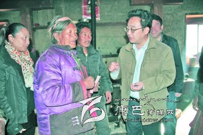 ↑州人大常委會主任李康在爐霍縣蝦拉沱村調研。