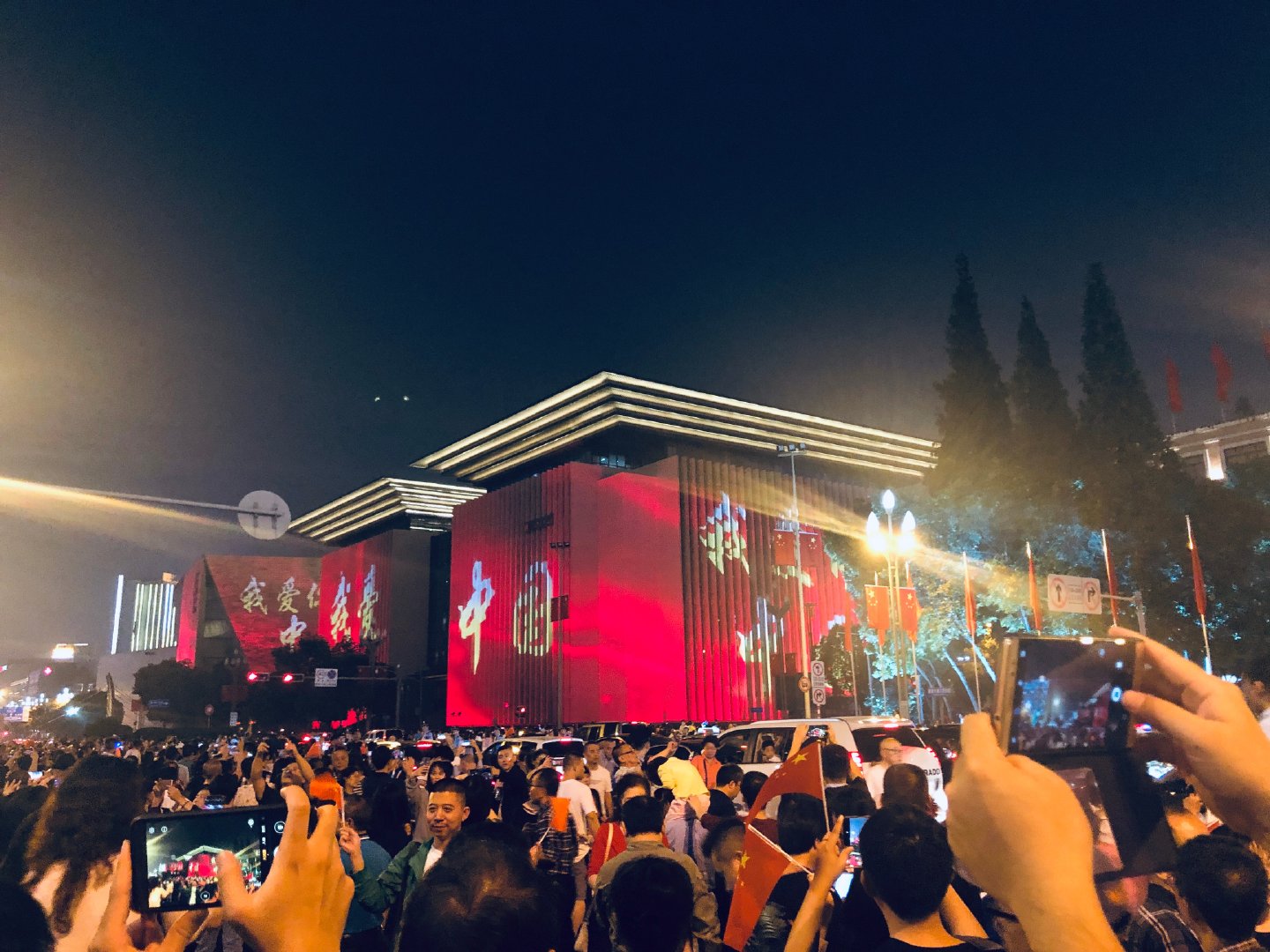 為慶祝新中國(guó)成立70周年,成都市開(kāi)啟超級(jí)夜景模式。四川大劇院、四川美術(shù)館、四川省圖書(shū)館、成都市博物院等建筑被大型投影包裹,美輪美奐!群眾紛紛拍照留念,還有群眾激動(dòng)地在現(xiàn)場(chǎng)合唱《我和我的祖國(guó)》,祝福祖國(guó)母親生日快樂(lè)。