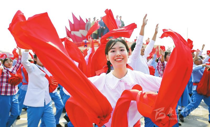 群眾游行中的美好生活方陣。 新華社記者劉軍喜攝