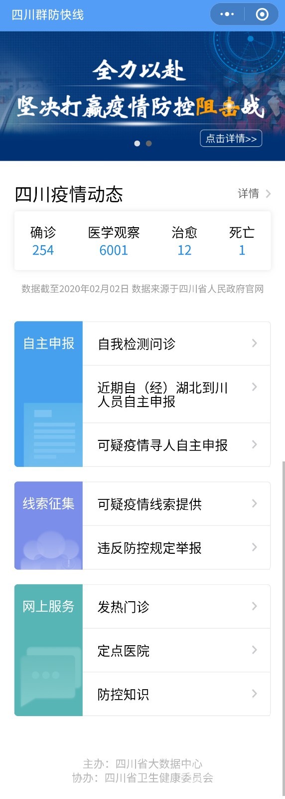 為落實(shí)四川省應(yīng)對(duì)新型冠狀病毒感染肺炎疫情應(yīng)急指揮部關(guān)于“運(yùn)用大數(shù)據(jù)等現(xiàn)代技術(shù)查找疫情高發(fā)地區(qū)來(lái)川人員,切實(shí)做到“找得到、管得住、服務(wù)好”。2月3日,四川省大數(shù)據(jù)中心傳出好消息,該中心會(huì)同省衛(wèi)生健康委等部門和單位,充分利用大數(shù)據(jù)技術(shù)全力攻堅(jiān),開(kāi)發(fā)推出“四川群防快線”平臺(tái),并于當(dāng)日正式上線。