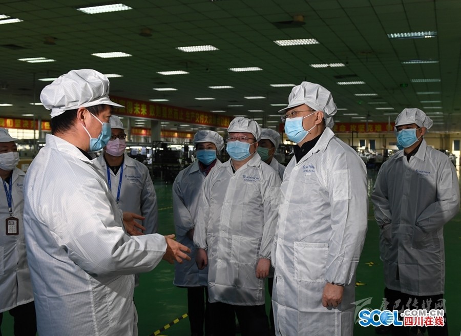 尹力前往際華三五三六實(shí)業(yè)有限公司,調(diào)研防護(hù)服等疫情防控物資生產(chǎn)情況。他說(shuō),醫(yī)療防護(hù)物資是打贏疫情防控阻擊戰(zhàn)的重要保障,企業(yè)要開(kāi)足馬力加緊生產(chǎn),同時(shí)要堅(jiān)持以產(chǎn)品質(zhì)量為生命線(xiàn),強(qiáng)化技術(shù)裝備創(chuàng)新,優(yōu)化生產(chǎn)工藝流程,保證產(chǎn)品質(zhì)量安全可靠,相關(guān)部門(mén)要組織專(zhuān)家加強(qiáng)技術(shù)指導(dǎo),地方要強(qiáng)化要素保障,幫助企業(yè)解決生產(chǎn)遇到的具體困難問(wèn)題,努力為全省乃至全國(guó)疫情防控作貢獻(xiàn)。在京東方光電科技有限公司和四川九洲電器集團(tuán),尹力詳細(xì)了解企業(yè)落實(shí)疫情防控措施和復(fù)工復(fù)產(chǎn)情況,鼓勵(lì)企業(yè)根據(jù)疫情發(fā)展和整體防控要求,不斷完善和優(yōu)化管理工作,把防控措施做得更精準(zhǔn)更到位,讓企業(yè)運(yùn)行更高效成本更低。地方政府要突出抓好穩(wěn)就業(yè)、穩(wěn)企業(yè)的工作,組織身體健康的群眾及時(shí)返崗就業(yè),更加主動(dòng)服務(wù)企業(yè)復(fù)工復(fù)產(chǎn)。他強(qiáng)調(diào),高科技企業(yè)要在疫情防控中發(fā)揮科技優(yōu)勢(shì)作用,要對(duì)標(biāo)社會(huì)管理需要和群眾生活需求,組織研發(fā)生產(chǎn)對(duì)路產(chǎn)品,增強(qiáng)市場(chǎng)競(jìng)爭(zhēng)力和占有率。