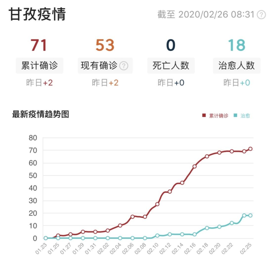 2月26日,記者從甘孜州應(yīng)對(duì)道孚縣疫情現(xiàn)場(chǎng)指揮部獲悉,2月25日,甘孜州新增兩例新冠肺炎確診病例,均為前期道孚縣集中隔離的無癥狀感染者訂正為確診。