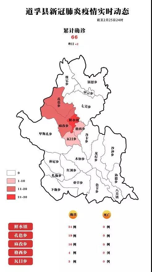 截至2月25日24時(shí),甘孜州累計(jì)確診新冠肺炎病例71例,除了早期康定、色達(dá)、稻城共計(jì)發(fā)現(xiàn)5例武漢來源輸入性病例外,其余66例均在道孚縣,且都集中在麻孜鄉(xiāng)、孔色鄉(xiāng)、格西鄉(xiāng)、各卡鄉(xiāng)、瓦日鄉(xiāng)、鮮水鎮(zhèn)“五鄉(xiāng)一鎮(zhèn)”。