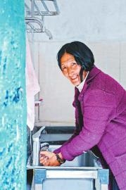 通過參加學(xué)習(xí)班,不少村民養(yǎng)成了好習(xí)慣。圖為9月13日,卡娘村一位村民正在洗手?! ∷拇ㄔ诰€記者楊樹攝
