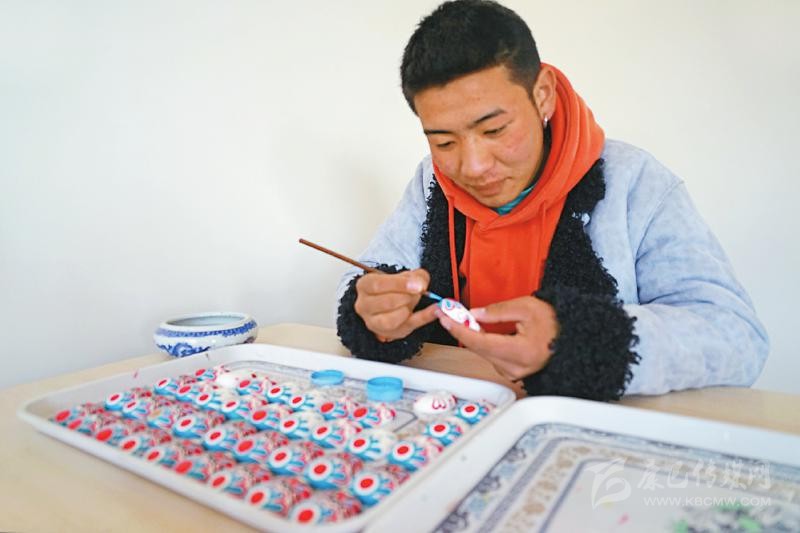 本著自主自愿的原則,教學班結束后,65名藏族青年主動加入扶貧彩繪實訓班,成為項目的第一批學員?!皩嵱柶陂g不需要交任何費用,還包吃住。我對畫京劇臉譜很有興趣,我們第一個月學習繪畫基本功,第二個月開始,根據(jù)成品質(zhì)量,就可以計件得酬勞,學習期間我每月能掙500多元?!壁雠f。