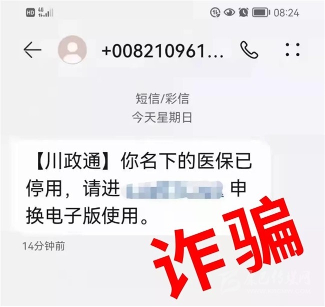 12月5日,紅星新聞記者從成都市醫(yī)保局獲悉,今日,成都市醫(yī)保局接到群眾反映,有不法分子通過發(fā)送短信提示成都醫(yī)保參保人,“你名下的醫(yī)保卡已停用,請申請電子版使用?!闭T導(dǎo)市民點擊網(wǎng)址鏈接。