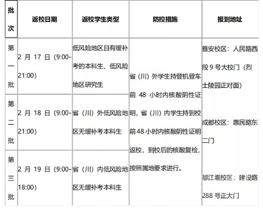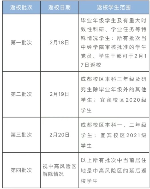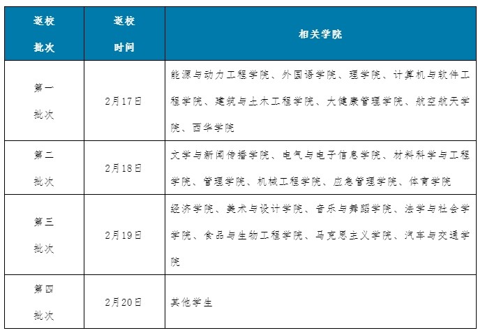 按照“錯時、錯峰、錯層次”總體原則,具體返校批次如下: