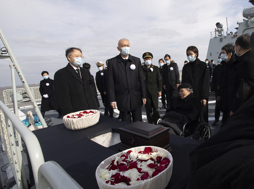 受黨中央委托,中共中央政治局常委、中央書記處書記蔡奇等領(lǐng)導(dǎo)同志和江澤民同志的夫人王冶坪等親屬護(hù)送骨灰撒放