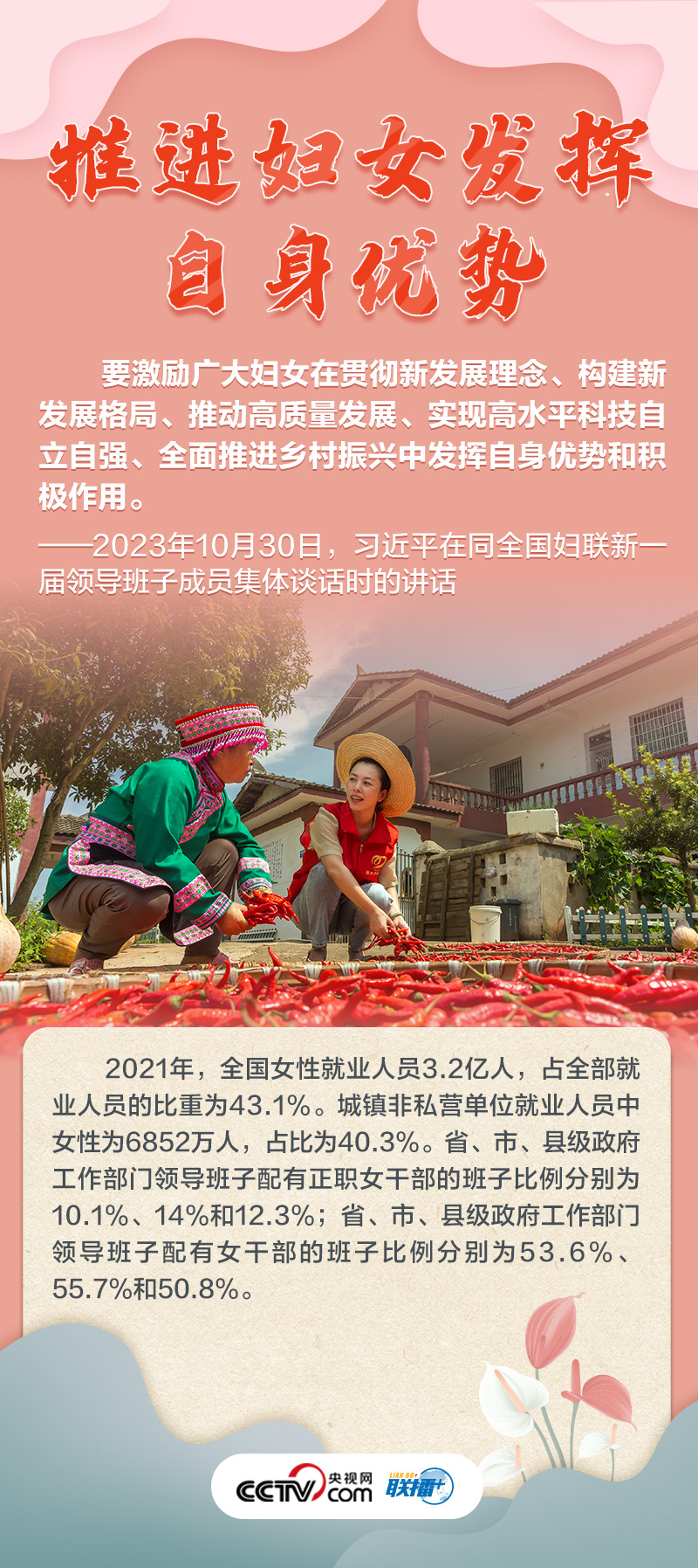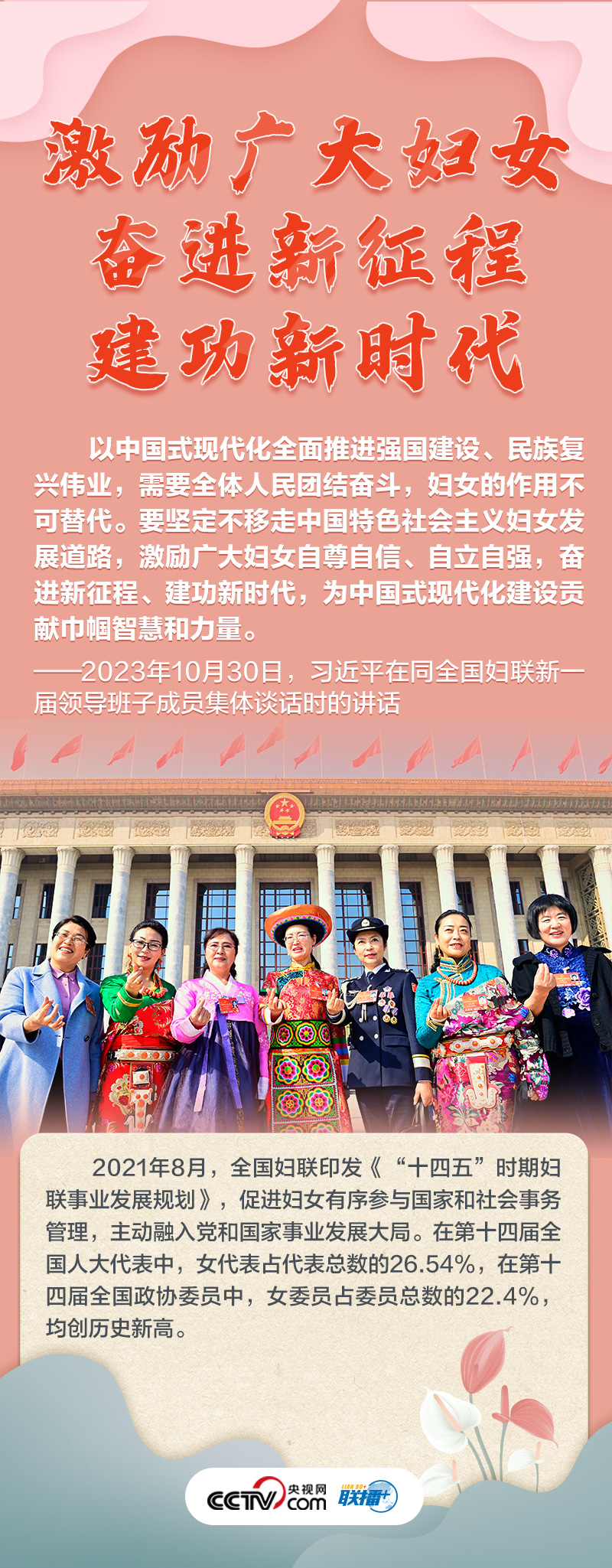 如何做好新時(shí)代新征程上婦女兒童工作,凝聚起中國(guó)式現(xiàn)代化建設(shè)的巾幗力量?央視網(wǎng)《聯(lián)播+》特推出海報(bào),與您一起了解總書記最新指示,以及近年來(lái)婦女事業(yè)和婦聯(lián)工作取得的非凡成就。
