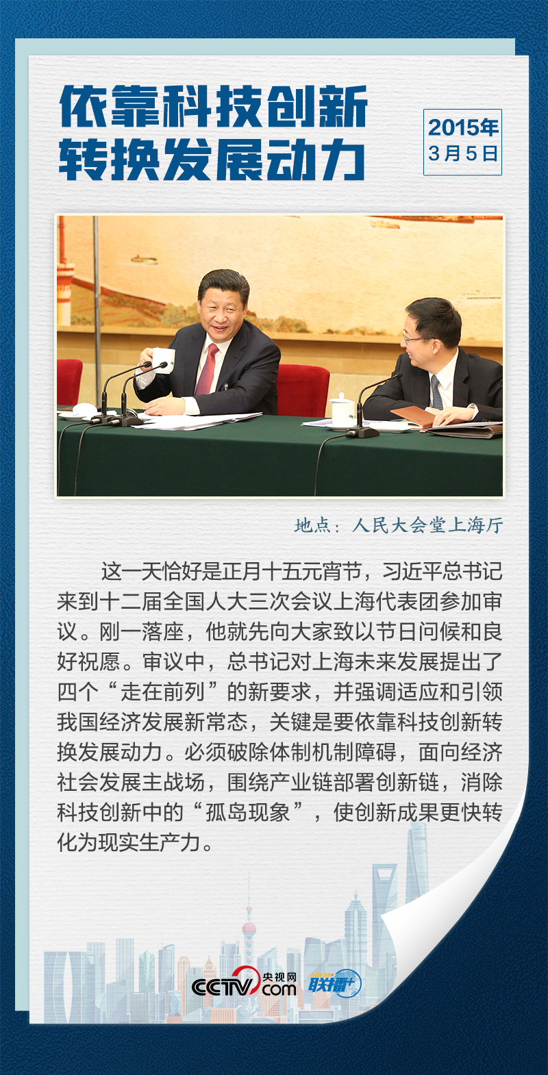 上海是我國最大的經(jīng)濟(jì)中心城市,是全國改革開放的排頭兵、創(chuàng)新發(fā)展的先行者,習(xí)近平曾多次深入上海各地區(qū)調(diào)研,多次參加全國兩會上海代表團(tuán)審議,“科技創(chuàng)新”是他反復(fù)強(qiáng)調(diào)的關(guān)鍵詞。