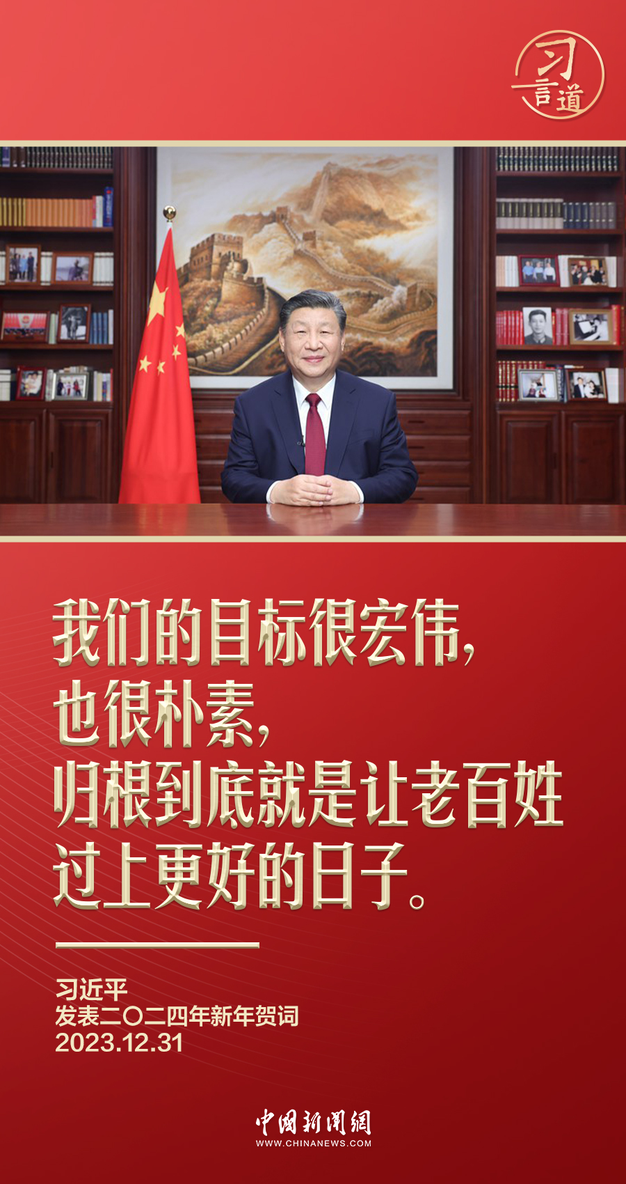 一元復(fù)始,歲律更新。12月31日晚,國家主席習(xí)近平的2024年新年賀詞如約而至。在賀詞中,習(xí)近平再次強(qiáng)調(diào)中國共產(chǎn)黨孜孜以求的目標(biāo)——“讓老百姓過上更好的日子”。