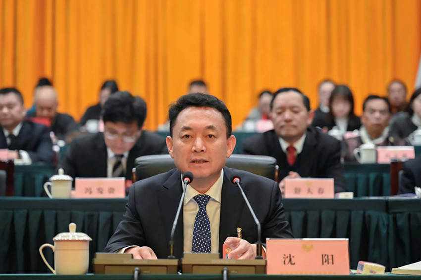 1月29日,甘孜藏族自治州第十三屆人民代表大會(huì)第三次會(huì)議、政協(xié)甘孜藏族自治州第十四屆委員會(huì)第三次會(huì)議在康定開(kāi)幕,州委書記沈陽(yáng)出席開(kāi)幕會(huì)。圖為沈陽(yáng)在州政協(xié)十四屆三次會(huì)議開(kāi)幕會(huì)上講話。賴強(qiáng) 甲央讓布 攝