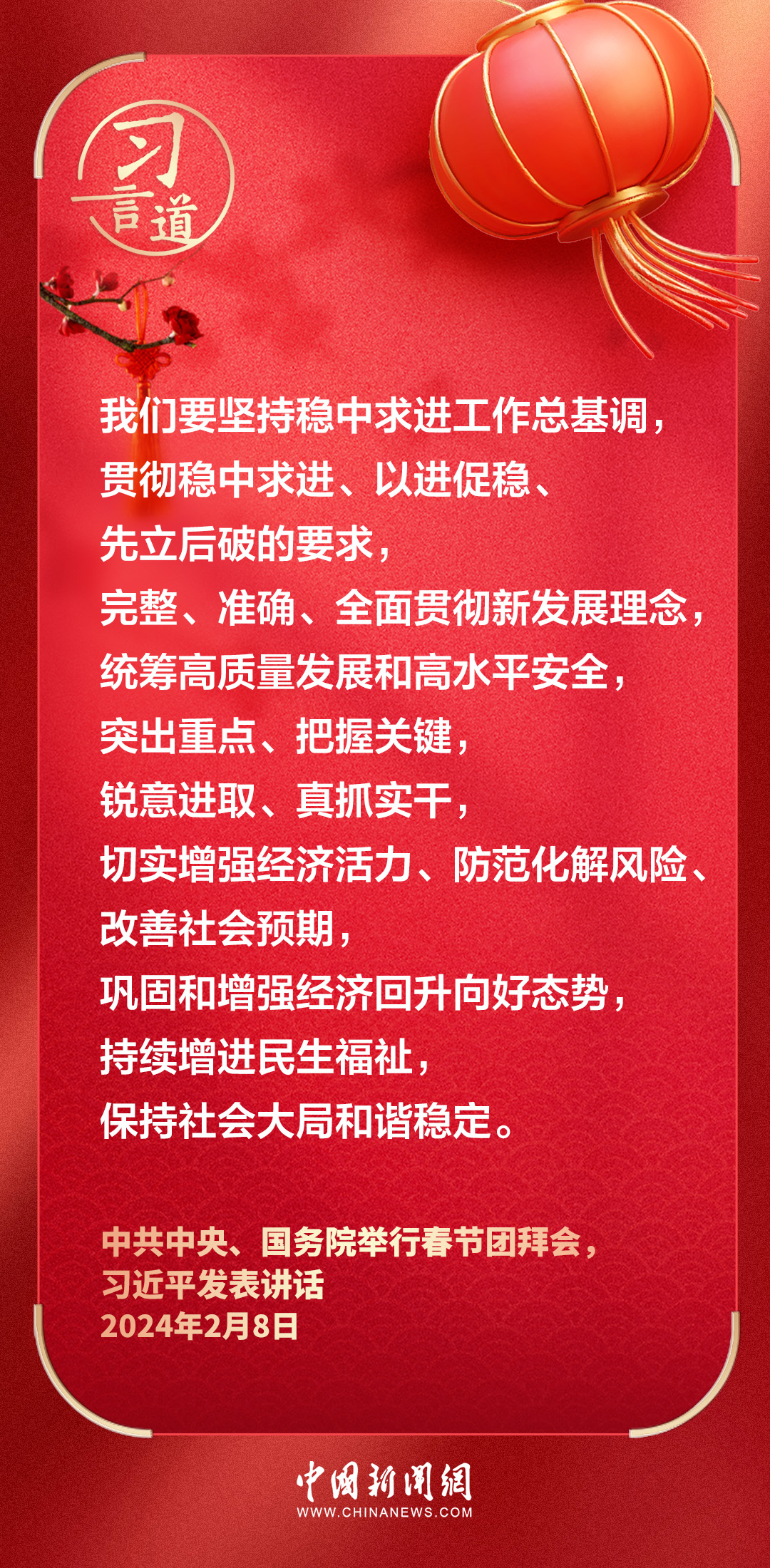 中共中央、國(guó)務(wù)院8日上午在人民大會(huì)堂舉行2024年春節(jié)團(tuán)拜會(huì)。中共中央總書記、國(guó)家主席、中央軍委主席習(xí)近平發(fā)表講話——