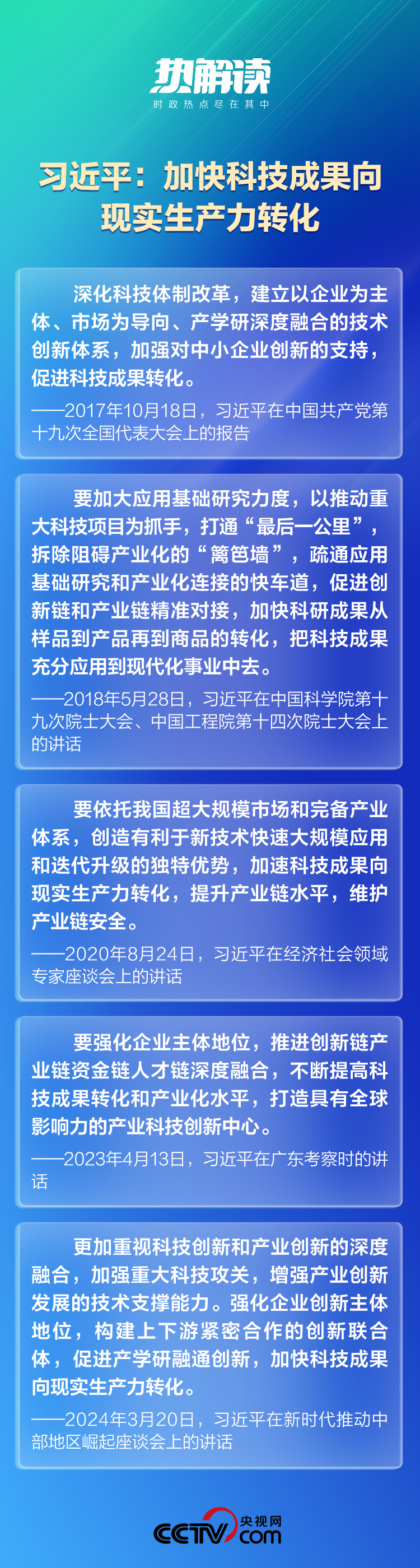 “深化科技體制改革”“圍繞產(chǎn)業(yè)鏈部署創(chuàng)新鏈、圍繞創(chuàng)新鏈完善資金鏈”“構(gòu)建上下游緊密合作的創(chuàng)新聯(lián)合體,促進產(chǎn)學(xué)研融通創(chuàng)新”……總書記反復(fù)強調(diào)的,正是科技成果轉(zhuǎn)化的關(guān)鍵密鑰。