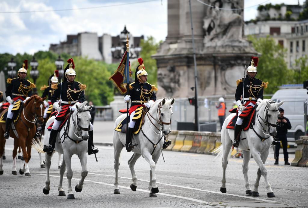 ??歡迎儀式后,習(xí)近平和夫人彭麗媛在共和國衛(wèi)隊148名騎兵組成的禮兵馬隊和摩托車隊護(hù)衛(wèi)下,乘車前往愛麗舍宮。