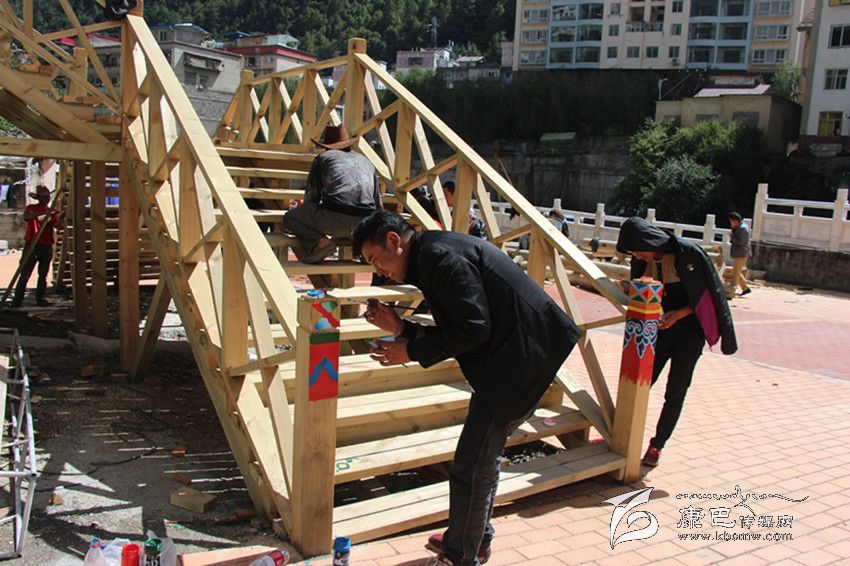 “在深秋艷陽的照射下,環(huán)山路木質棧道的長廊上圖案絢麗色調鮮明。現場有序地堆放著紅色的地磚和白色的木材。藏族畫匠在專心描摹,工人們的鋸子有節(jié)奏地發(fā)出聲音。在公主橋的施工現場,村民們有說有笑地忙著平路基,抬石頭、撮泥巴、砌墻。”這是近日筆者在康定文成環(huán)山路施工現場看到的熱鬧場面。