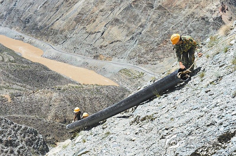 “蜘蛛人”甘孜得榮懸崖峭壁上架“空中水路”