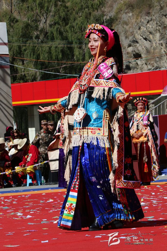 43名丹巴美女身著色彩艷麗的民族服飾緩步而來,或小家碧玉,或嫵媚動人,盡展嬌姿。