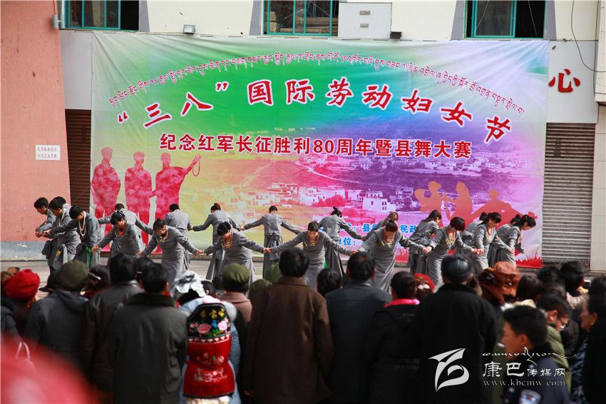 本網(wǎng)訊(何才華文/圖)3月7日,鄉(xiāng)城縣舉行了慶祝“三八”國際勞動婦女節(jié)、紀(jì)念紅軍長征勝利80周年暨縣舞大賽。以婦代會為單位的廣大婦女同胞著艷麗藏裝,隨著縣舞音樂激情舞蹈。為增加舞蹈觀賞性,不少男同胞也加入其中。11支參賽隊伍,300余名參賽人員為觀眾展示了鄉(xiāng)城縣歷時兩年收集民間題材編排的首套縣舞。經(jīng)過角逐,縣環(huán)林局、縣交通運(yùn)輸局等婦代小組組成的參賽隊獲得冠軍。