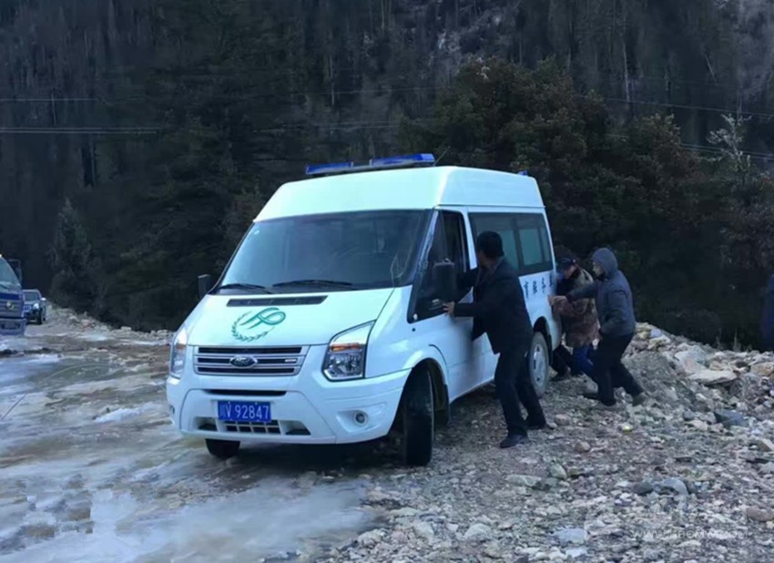 巡回醫(yī)療車(chē)結(jié)冰路面遇險(xiǎn)