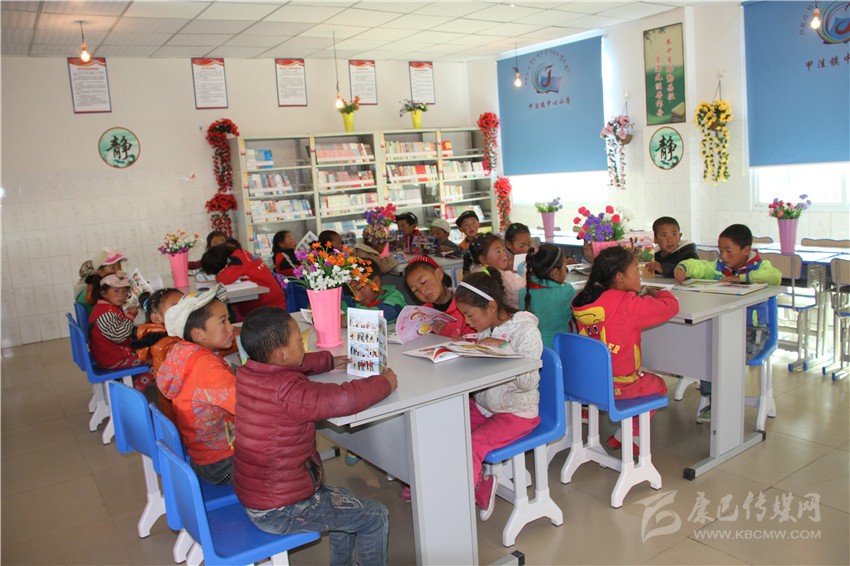 甲洼鎮(zhèn)小學(xué)生在閱覽室看書。
