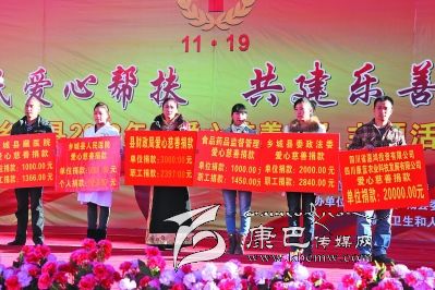 本網(wǎng)訊(何才華 文/圖)11月18日,鄉(xiāng)城縣愛心慈善募捐活動在該縣香巴拉休閑廣場舉行,來自全縣的機關干部、宗教界代表、個體工商戶代表、建筑施工企業(yè)等各界人士近2000人為需要救助者獻出自己的一份愛心?;顒蝇F(xiàn)場募捐資金532998元。
