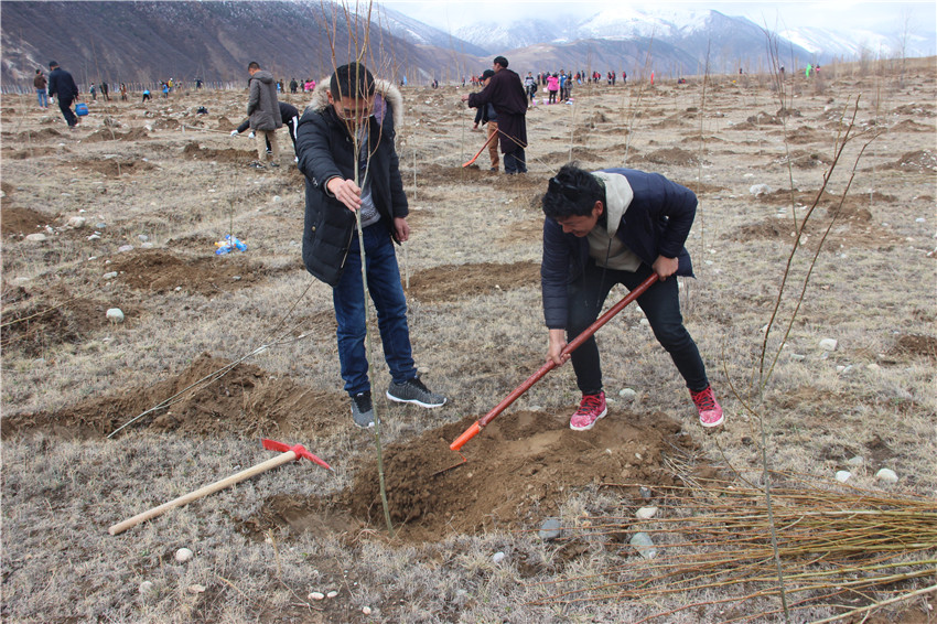 石渠干群植樹忙