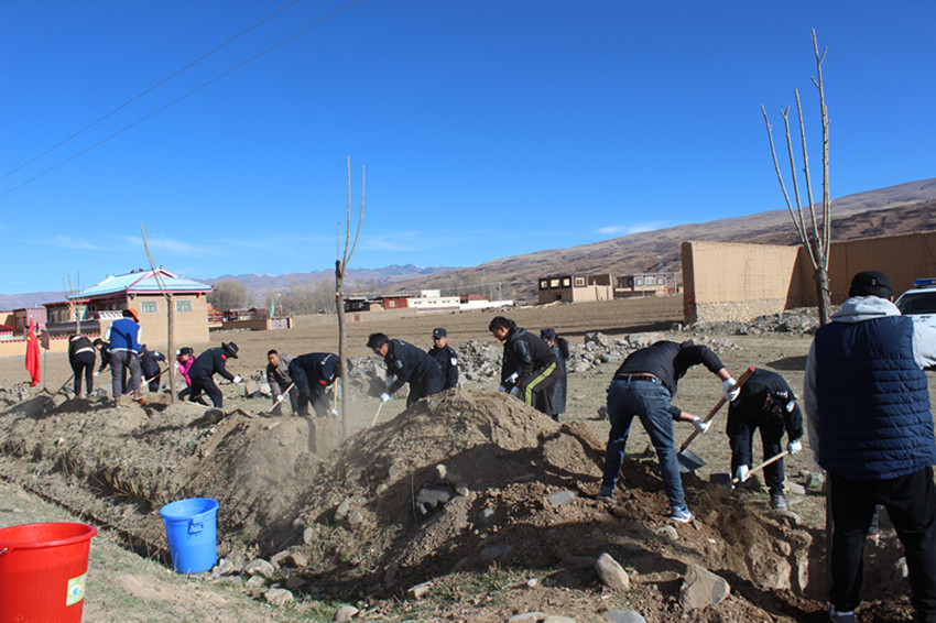 本網訊(縣委中心報道組 余應瓊 文/圖)種下一片綠色,共建生態(tài)家園。4月12日,甘孜縣黨政領導、干部群眾紛紛組成義務植樹小組,開展大規(guī)模的綠化行動。