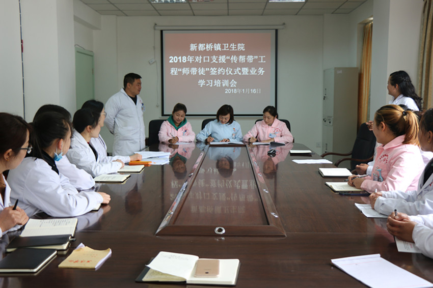 春風沐浴、雨露滋潤;德隆情盛、高屋建瓴。為進一步提升康定地區(qū)基層醫(yī)療衛(wèi)生機構(gòu)服務能力,打造一支有擔當、有能力、可支撐的本土醫(yī)療衛(wèi)生人才隊伍。在對口幫扶工作中,康定市衛(wèi)計局高度重視本土人才培養(yǎng),將“傳幫帶”工作作為了重點。2018年1月8日,康定市疾控中心與都江堰市疾控中心通過座談商榷了“傳幫帶”幫扶方案,達成了共識,下一步將通過對口幫扶,互訪交流、業(yè)務培訓,信息溝通共享等方式,在綜合管理、等級評審、人員能力建設、實驗室檢驗檢測能力建設、應急處置能力建設等方面進行重點“傳幫帶”。與此同時,康定市第二人民醫(yī)院舉辦了對口支援“傳幫帶”工程“師帶徒”簽約儀式暨工作推進會議。會上各位專家與選中的學員進行現(xiàn)場簽約,雙方約定在今后的一年中,專家們通過理論培訓、教學手術(shù)(操作)、教學查房、疑難病例討論、常見病多發(fā)病診治、開展新技術(shù)新業(yè)務等方面進行指導、幫扶、協(xié)作,明確了各自的目標任務和工作職責。