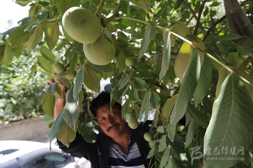 村民展示碩果累累的核桃。