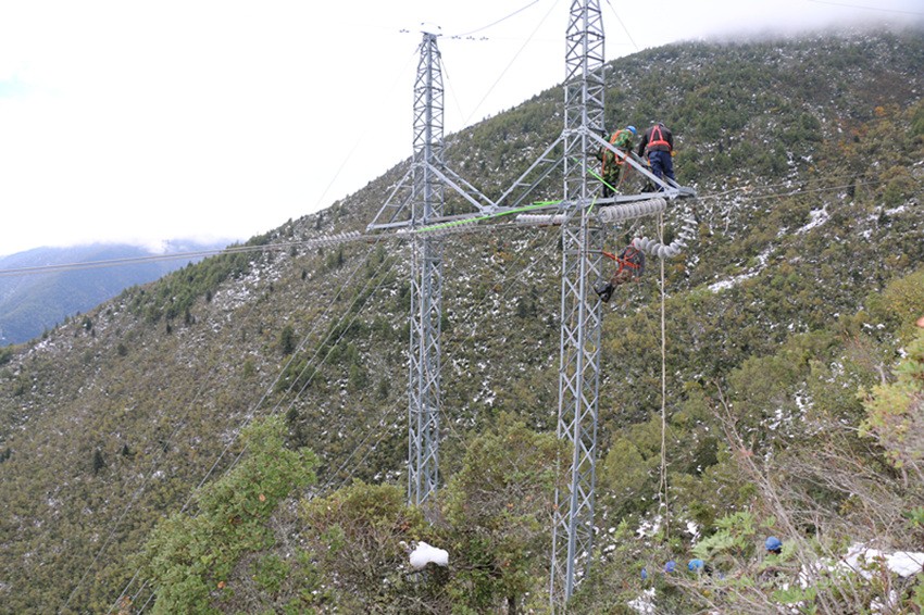 災(zāi)情發(fā)生當(dāng)晚,國網(wǎng)甘孜供電公司連夜組織多支應(yīng)急搶修隊(duì)伍,共計人員120余人、工程搶險車22輛趕赴現(xiàn)場,冒著雨雪對故障線路進(jìn)行巡視,查找故障點(diǎn)。由于夜間大霧加雪,能見度低,搶險車無法開上鄉(xiāng)間小路,搶修人員只能攜帶著工器具徒步巡視,搶修人員深一腳淺一腳地走在又冷又滑的雪地里,打著電筒仔細(xì)查看每一基桿塔、每一處開關(guān)。經(jīng)過連續(xù)8小時的奮戰(zhàn),終于找到故障點(diǎn),于4日下午4時全面恢復(fù)供電。