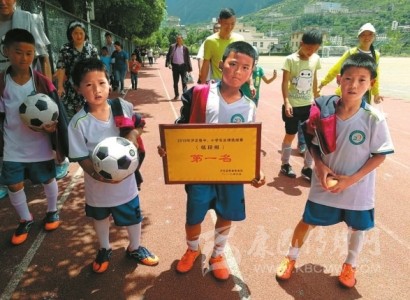 山里娃娃吃得苦、受得累、體能好、跑得快。通過集訓體能、技藝和賽場對抗能力,球員在短時間里球技突飛猛進,接連取得優(yōu)異戰(zhàn)績:去年6月,參加“2018年瀘定縣中小學生足球選拔賽”獲得了低段組第一名;去年7月,參加“甘孜州第三屆青少年校園足球聯(lián)賽”獲得了甘孜州東路片區(qū)足球賽低段組第一名。