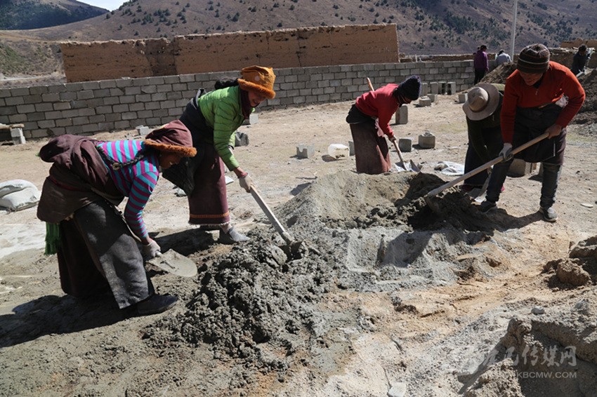 在工程實施中,全組的村民相互幫助,齊心協(xié)力建新房?!白蛱齑蠹?guī)臀野逊孔有薜冒桶瓦m適、漂漂亮亮的。我也來幫四郎曲西建房。這樣你幫我,我?guī)湍悖銕退?,要不了多久,我們這里家家戶戶都會很漂亮。”正在院子里攪拌灰漿的村民格絨多登微笑著說。