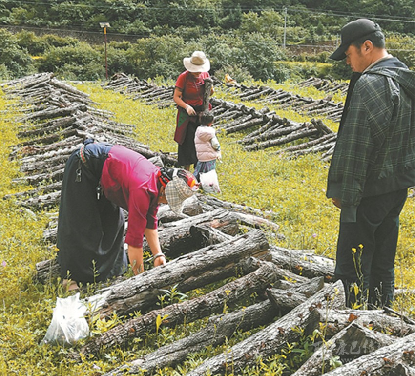 村民采摘黑木耳。 楊志瑪 攝