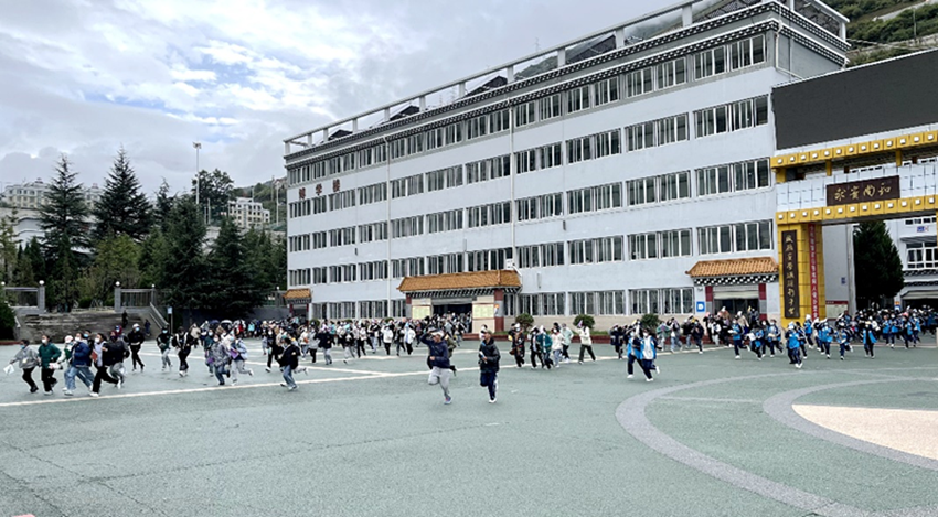 康定中學(xué)應(yīng)急疏散演練現(xiàn)場。