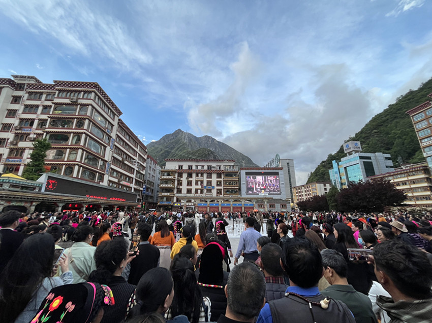 在夜色微瀾的浪漫康定城,各族群眾和參與其中的游客們?cè)谖璨街泄蚕韨鹘y(tǒng)民俗節(jié)日的魅力與熱情,跟隨音樂(lè)和舞姿的變化,生動(dòng)演繹著民族團(tuán)結(jié)與傳統(tǒng)民族文化的互融共促、和諧共奏的美好樂(lè)章。