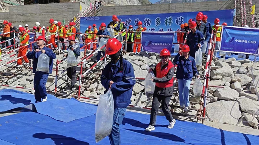 “今年放流的魚苗種類繁多,有四川裂腹魚、短須裂腹魚、長絲裂腹魚、裸腹葉須魚、軟刺裸裂尻等,其中,裸腹葉須魚為中國瀕危動物紅皮書‘易?!~類,四川裂腹魚為四川省重點保護魚類?!比A電金上葉巴灘分公司負責人說,為減少工程建設對魚類及水生生物的影響,公司建立了萬里長江第一級魚類增殖放流站,是國內(nèi)首個截流當年開展增殖放流的水電站,自2019年首次舉辦試驗性增殖放流活動以來,累計放流106萬尾特有珍稀魚苗。同時為進一步推進金沙江魚類種群恢復、水域生態(tài)環(huán)境的改善,公司還追加了1.7億元的環(huán)保投資,增設了一臺生態(tài)備用機組,提高運行期生態(tài)下泄流量的安全度和保證率。聯(lián)合華中農(nóng)業(yè)大學開展黃石爬鮡、姚氏高原鰍等遠期放流魚種人工繁殖技術研究,采取分層取水技術,有效改善水庫下泄水溫,為魚類繁殖生存提供適宜條件。