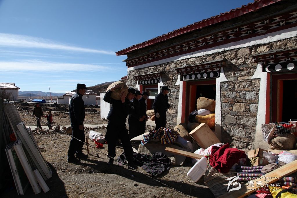 26日一大早,記者驅(qū)車趕往塔公江巴村采訪,在江巴村一戶受災(zāi)群眾家院壩內(nèi),看到了一群熟悉的聲影,他們正在幫村民巴扎轉(zhuǎn)移糧食。村民巴扎家堆放糧食的房屋外墻受地震影響裂開了幾到明顯的口子,磚瓦散落一地。主人家非常擔(dān)心房子垮了將糧食掩埋,這是他辛苦了一年的勞動成果,更是一家人過冬的口糧,正當(dāng)巴扎心焦如何將這兩千余斤糧食如何轉(zhuǎn)移到安全地帶時(shí),他們出現(xiàn)了。當(dāng)他們了解到巴扎想盡快把糧食和其他物品轉(zhuǎn)移到安全地點(diǎn)時(shí),他們二話不說,簡單分工后,馬上就忙開了。他們扛的扛、拉的拉、背的背、抬的抬……很快就將糧食以及其他零散物品轉(zhuǎn)移到巴扎家的安全地帶??吹竭@一切,一旁的巴扎對他們翹起了大拇指用很不流利的漢語說到:實(shí)在太感謝你們了,卡卓、卡卓……