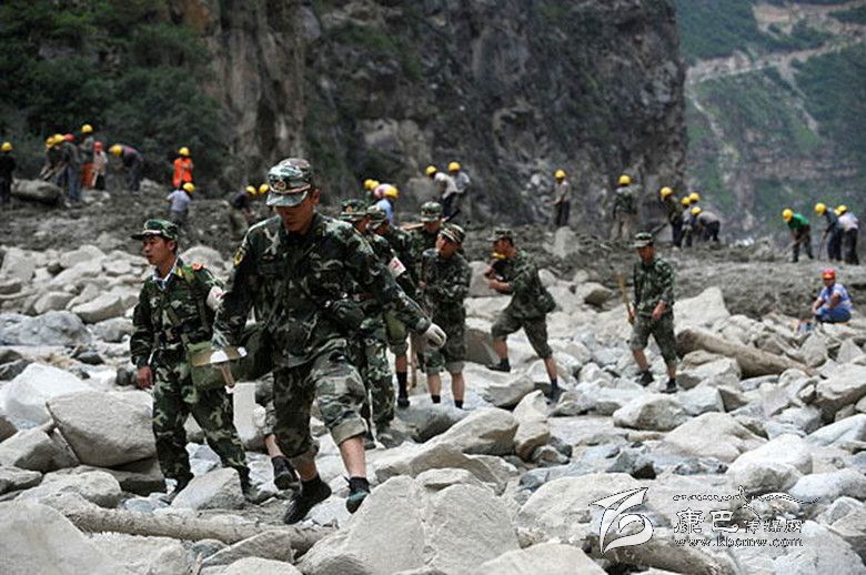 2009年7·23康定舍聯(lián)鄉(xiāng)泥石流災(zāi)害發(fā)生后,武警官兵在現(xiàn)場救援。 資料圖