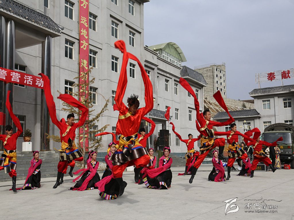 演出活動在充滿藏族民族風(fēng)情的男女群舞《吉祥頌》中拉開帷幕,節(jié)目一開始,演員們激昂的熱情、優(yōu)美的舞姿給觀眾們帶來了美的享受,女子獨唱《納西情歌》《套馬桿》、男生獨唱《吉祥謠》、女子群舞《情灑康巴》、男子群舞《青春踢踏》、女子快板《甘孜兒女心向黨》等精彩節(jié)目相繼登場,將演出活動推向一個又一個高潮。特別是由支隊官兵表演的民族舞蹈《野人狂歡》、表演唱《當(dāng)兵就是帥》等精彩節(jié)目,贏得了觀眾們的陣陣喝彩。雖然天氣異常寒冷,天空還不時飄起了雪花,但演員們卻一直以飽滿的激情、嫻熟的技藝,為官兵們獻上了一個又一個精彩的節(jié)目。整場演出抒發(fā)了駐地群眾對人民子弟兵的深厚情誼和感激之情,表達了他們對人民子弟兵扎根高原、無私奉獻的欽佩之情,他們用自己的精彩表演,向人民子弟兵致以最親切的問候和最誠摯的敬意。