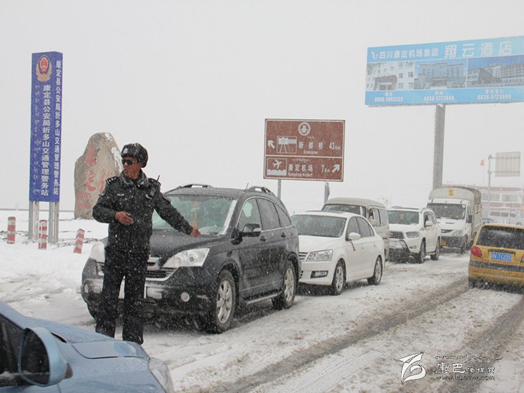 去年10月3日,華西都市報收到了讀者傳來的一張圖片,照片上的交警穿著厚厚的大衣,背景白雪皚皚。“這是我今天翻折多山的時候照的,當(dāng)時車子排隊翻山遇到堵車心里覺得毛焦火辣的,我當(dāng)時看到他站在暴雪中指揮交通,心里就像吃了定心丸,我要為這個交警點(diǎn)贊。”華西都市報記者尋著這條線索多方打探,終于聯(lián)系到了康定縣公安局交警大隊新都橋中隊長王洛讓。