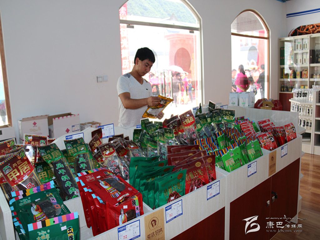 “圣潔甘孜”品牌營銷專柜賣場坐落于磨西古鎮(zhèn)的中心,緊挨游客服務(wù)中心和新開館的磨西紅軍長征紀(jì)念館。5月30日,記者在現(xiàn)場看到,賣場里整齊有序地?cái)[放著上百種包裝精美的特色農(nóng)副產(chǎn)品:石渠白菌、野生獐子菌、丹巴香豬腿、九龍花椒、黑青稞酥、核桃油、葡萄酒、青稞酒、土蜂蜜、藏香梨、各系牦牛肉干、飲用礦泉水、瑪咖片……品種繁多的商品囊括了全州18個(gè)市縣的特色農(nóng)副產(chǎn)品,讓人目不暇接。