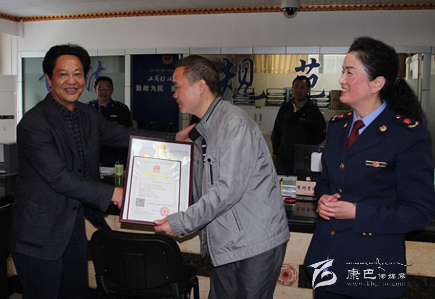 州委常委、農(nóng)工委主任楊凱頒發(fā)我州首張“三證合一、一照一碼”營(yíng)業(yè)執(zhí)照。