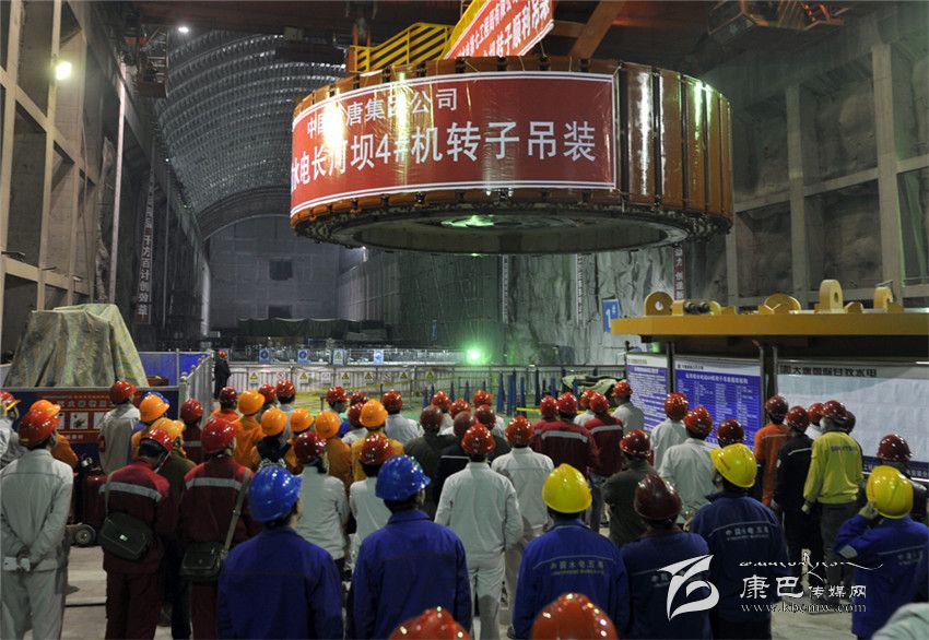 本網(wǎng)訊(蘭天 文/圖)4月27日10時(shí)38分,四川大唐國(guó)際甘孜水電開(kāi)發(fā)有限公司開(kāi)發(fā)建設(shè)的長(zhǎng)河壩水電站機(jī)電安裝工程現(xiàn)場(chǎng)傳來(lái)捷報(bào):長(zhǎng)河壩水電站4號(hào)65萬(wàn)千瓦機(jī)組、總重量為1240噸的轉(zhuǎn)子穩(wěn)穩(wěn)地落在機(jī)坑指定位置,實(shí)現(xiàn)一次吊裝成功,標(biāo)志著長(zhǎng)河壩水電站機(jī)組安裝工程又完成一個(gè)里程碑節(jié)點(diǎn)工期,長(zhǎng)河壩電站首臺(tái)機(jī)組機(jī)電安裝工程順利進(jìn)入機(jī)組總裝階段,為該電站明年汛前兩臺(tái)機(jī)組投產(chǎn)發(fā)電奠定了堅(jiān)實(shí)的基礎(chǔ)。