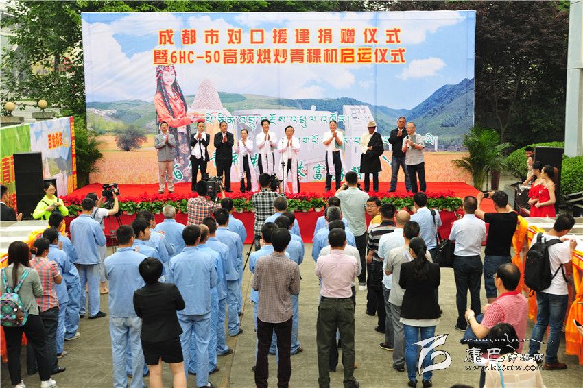 成都市委常委謝瑞武宣布50套全自動高頻青稞烘炒機啟運甘孜州。